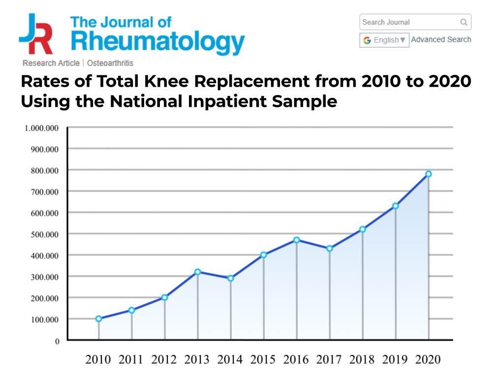 Let me explain:The amount of knee replacement surgeries performed every year has increased by 687% since 2010...